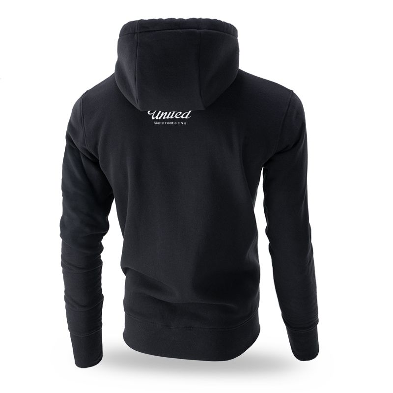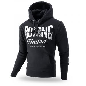 Ein Hoodie von Dobermans Aggressive aus angenehmer Baumwolle mit breitem elastischem Bund an den Ärmeln und am Saum. Auf der Vorder- und Rückseite befindet sich der Boxing United Print.