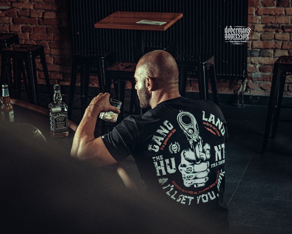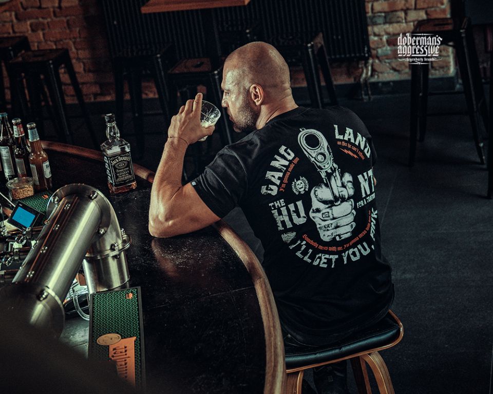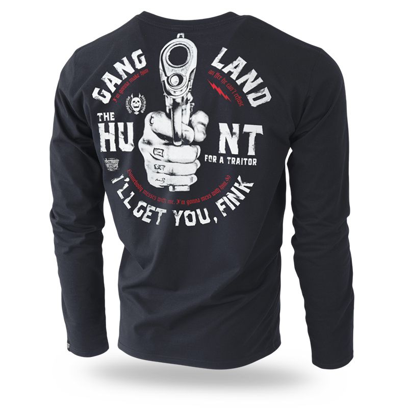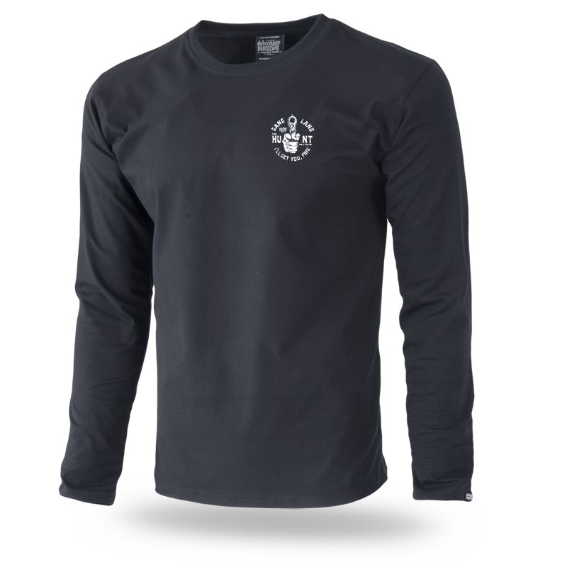 Langarmshirt aus angenehmer Baumwolle. Mit schmalem elastischem Bund am Hals. Wie für die Marke Doberman's Aggressive typisch, befindet sich auf der Rückseite ein großer "HUNT"-Aufdruck und auf der Vorderseite das gleiche Logo in kleinerer Ausführung.