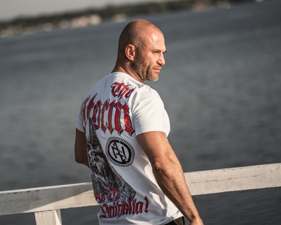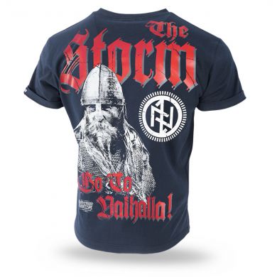Abgerundet wird das gesamte Design durch die Aufschrift THE STORM GO TO VALHALLA und ein kleineres Logo der Marke Doberman's Aggressive.