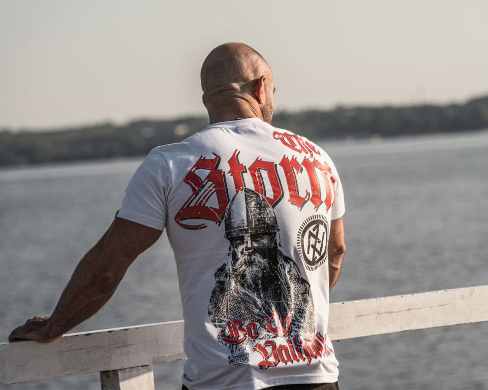 Klassisches Herren-T-Shirt aus hochwertiger Baumwolle mit kurzen Ärmeln.Auf dem linken Ärmel befindet sich ein kleiner Patch mit dem Doberman´s Aggressive-Logo. Wie schon für die Marke Doberman's Aggressive typisch ist, befindet sich auf der Rückseite ein großer Wikinger-Aufdruck.