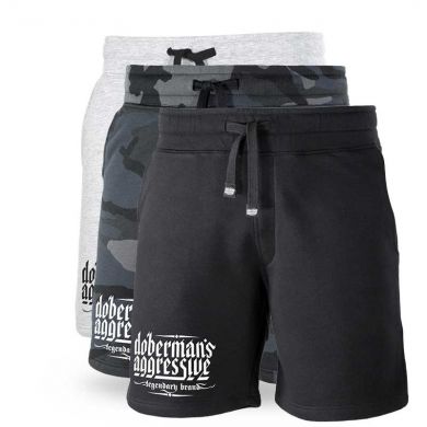 Joggingshorts aus Baumwolle. Der obere Teil der Shorts ist mit einem Kordelzug am Saum versehen, wodurch die perfekte Passform gewährleistet wird. Die Kordelenden sind mit “Doberman’s Aggresive“ Logo verziert. Die Shorts haben zwei Seitentaschen und eine aufgenähte Tasche auf der Rückseite.