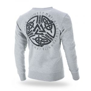 Sweatshirt aus 100 % Baumwolle. Der Saum und die Ärmel sind mit breitem elastischem Bund versehen. Am linken Ärmel befindet sich ein kleines Dobermans Aggressive Logo. Auf der Vorderseite befindet sich ein kleiner gestickter Aufnäher mit dem nordischen Symbol. Die Rückseite ist mit einer großen Grafik im nordischen Stil verziert, die im Konvexdruckverfahren hergestellt wurde.