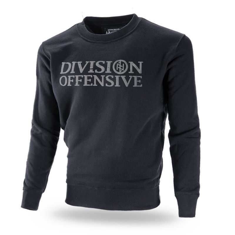 Sweatshirt aus 100 % Baumwolle. Der Saum und die Ärmel sind mit breitem elastischem Bund versehen. Am linken Ärmel befindet sich ein kleines Dobermans Aggressive Logo. Auf der Vorderseite befindet sich die durch ein konvexes Bedrucken erzeugte Division Offensive-Wortmarke, ergänzt durch nordische Symbole.