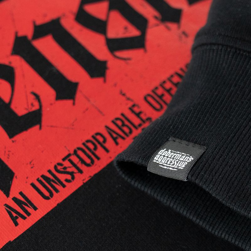 Ein bequemes Sweatshirt aus angenehmer Baumwolle. Auf der Brust befindet sich ein einfaches Motiv: Offensive An Unstoppable Offensive.