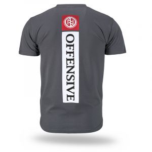 Das T-Shirt besteht aus Baumwolle mit einem Gewicht von 200 g. Auf der Rückseite befindet sich ein Druck „Offensive”.