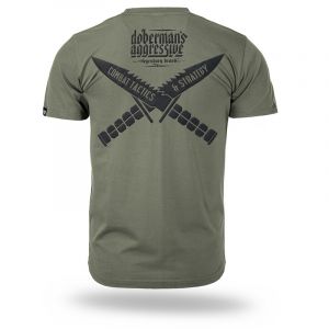 Das T-Shirt besteht aus Baumwolle mit einem Gewicht von 200 g. Auf der Rückseite befindet sich ein Druck "COMBAT TACTICS & STRATEGY".