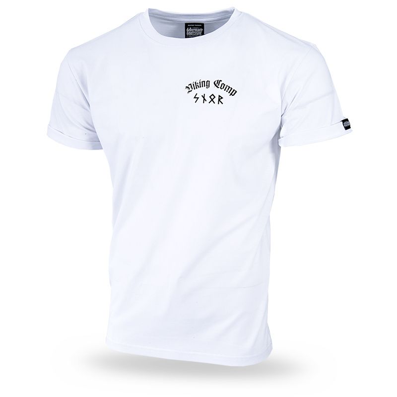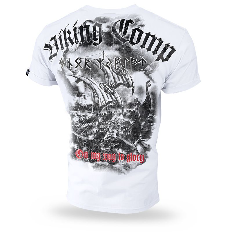 Klassisches Herren-T-Shirt aus hochwertiger Baumwolle mit kurzen Ärmeln.Auf dem linken Ärmel befindet sich ein kleiner Patch mit dem Doberman´s Aggressive-Logo. Auf der Vorderseite links auf der Brust befindet sich mit den Runen Symbole eine kleine Inschrift „Viking Comp“. Die Rückseite des Drucks zeigt Wikingerschiffe auf stürmischer See mit der Aufschrift Viking Comp – On my way to Glory.