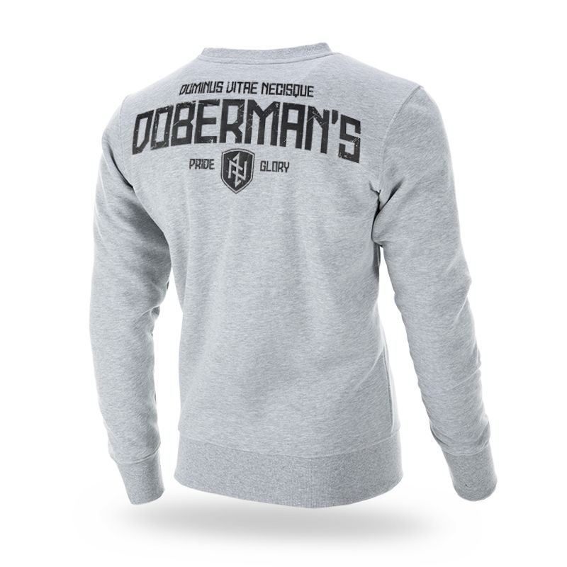 Ein bequemes Sweatshirt aus angenehmer Baumwolle. Während die Vorderseite einen kleinen Aufdruck auf der Brust hat, ist auf der Rückseite dagegen ein großer Dominus Vitae Necisque DOBERMANN-Aufdruck komplett mit einem Schild mit Runen und der Verbindung Pride - Glory.