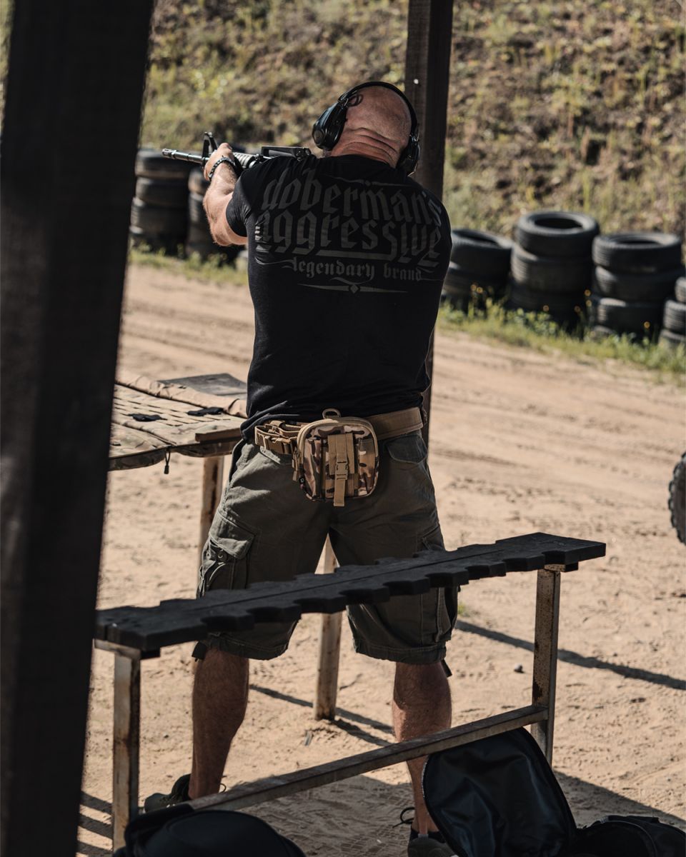 Sweatshirt aus 100 % Baumwolle. Der Saum und die Ärmel sind mit breitem elastischem Bund versehen. Am linken Ärmel befindet sich ein kleines Dobermans Aggressive Logo.