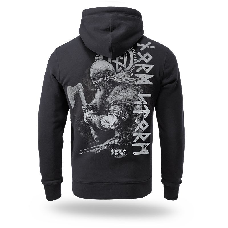 Ein Hoodie von Dobermans Aggressive aus angenehmer Baumwolle mit breitem elastischem Bund an den Ärmeln und am Saum.