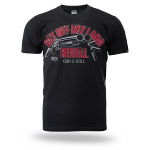 Klassisches Herren-T-Shirt aus hochwertiger Baumwolle mit kurzen Ärmeln.Auf dem linken Ärmel befindet sich ein kleiner Patch mit dem Doberman´s Aggressive-Logo. Auf der Brust mit großer Aufschrift Get Off My Land REBELL Gun & Roll.