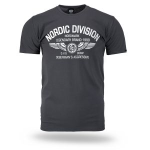 Klassisches Herren-T-Shirt aus hochwertiger Baumwolle mit kurzen Ärmeln.Auf dem linken Ärmel befindet sich ein kleiner Patch mit dem Doberman´s Aggressive-Logo. Auf der Brust mit großer Aufschrift Nordic Division.