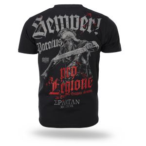 Klassisches Herren-T-Shirt aus hochwertiger Baumwolle mit kurzen Ärmeln.Auf dem linken Ärmel befindet sich ein kleiner Patch mit dem Doberman´s Aggressive-Logo. Vorder- und Rückseite sind mit dem Aufdruck Semper Paratus versehen.