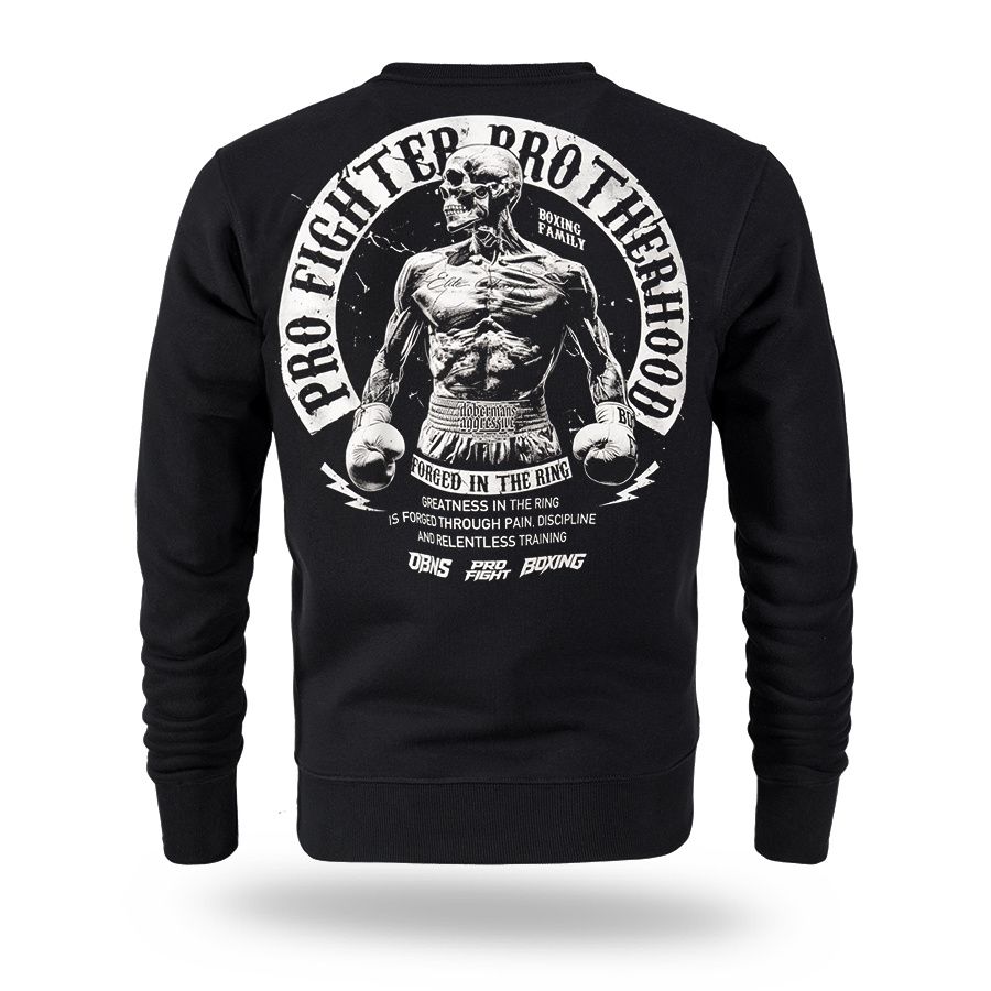 Ein bequemes Sweatshirt aus angenehmer Baumwolle. Vorder- und Rückseite sind mit dem Aufdruck Pro Fighter Brotherhood – Forged in the Ring versehen.