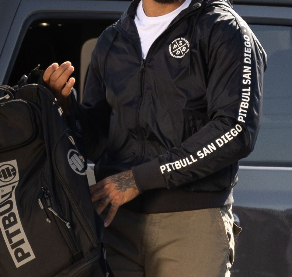 - Jacquard-Streifen mit der Aufschrift „PITBULL SAN DIEGO“ entlang der gesamten Ärmel